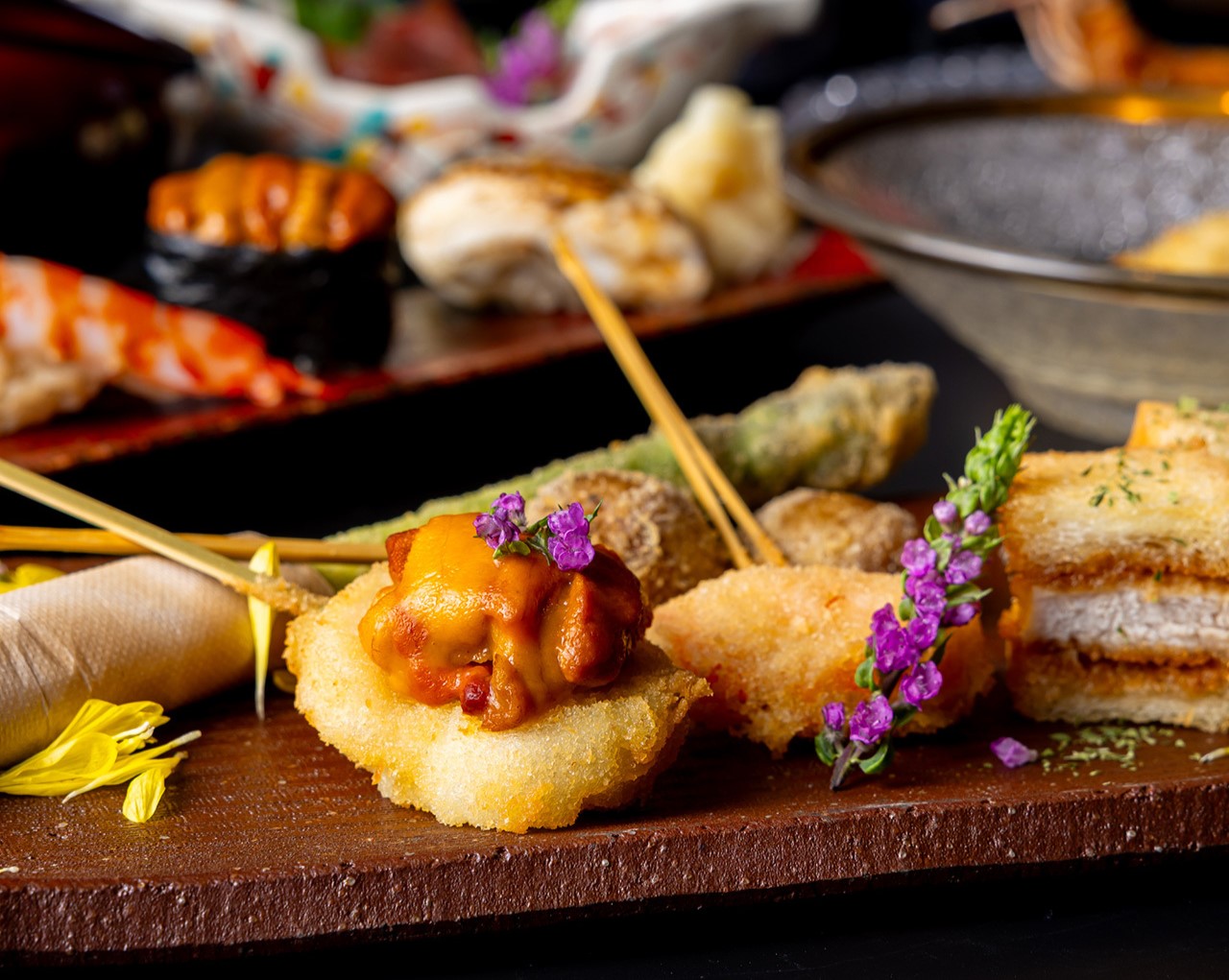 您可以享受使用精心挑选的食材和匠人闪耀技巧制作的炸串和握寿司。魅力在于您能够在一套餐中体验不同的日本饮食文化。由于菜单随季节和采购变化,您可以享受当天独特的美味。