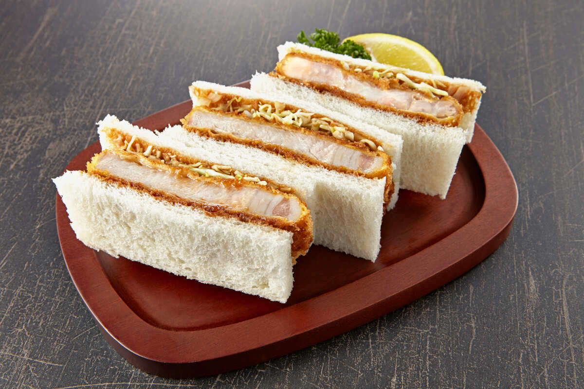 将炸猪排涂上炸猪排酱或伍斯特酱,夹在面包间做成的三明治。