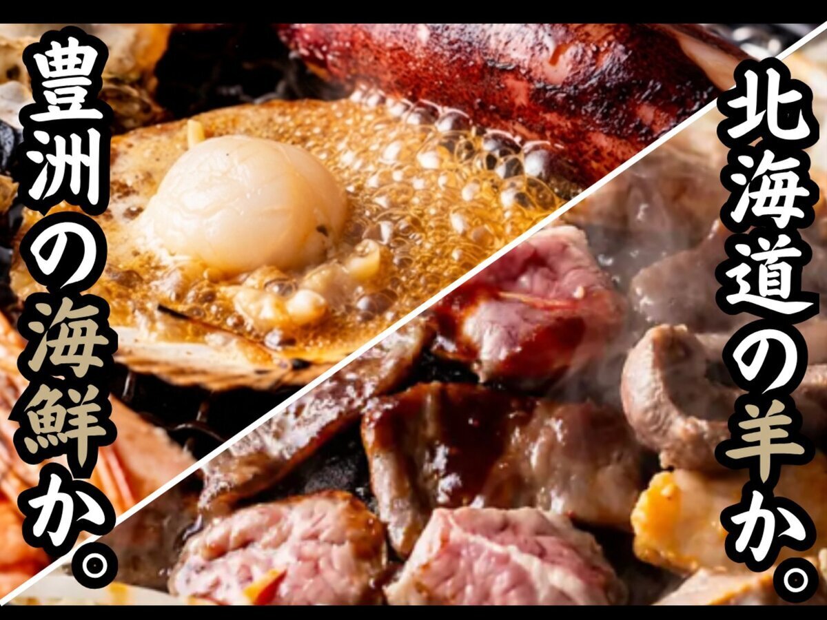 【御徒町站30秒】北海道千岁直送优质羔羊肉×丰洲直送新鲜海鱼的奢华合作!自豪的特级肩胛里脊烤成吉思汗肉与海鲜浜烧,在完全包间中尽情享用。