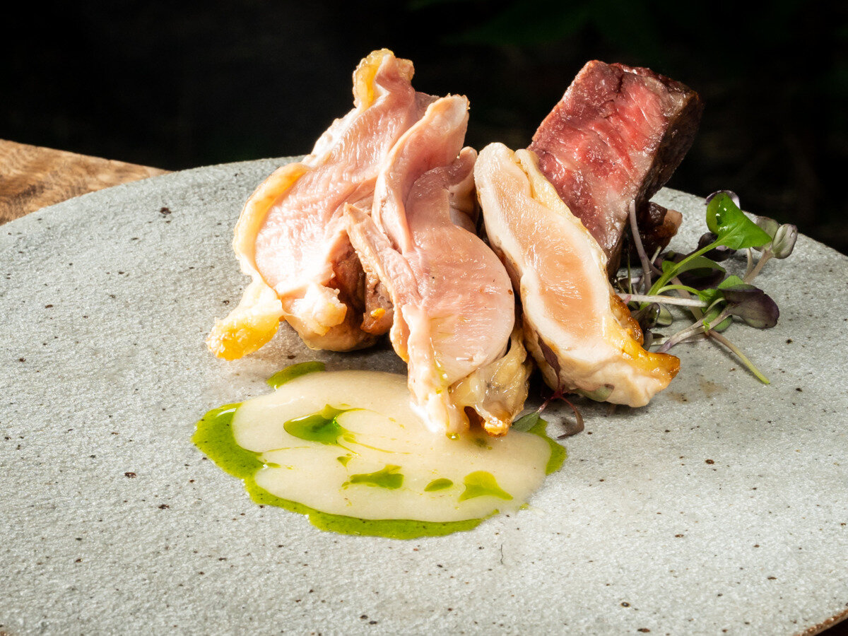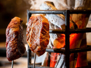 当季食材在您面前的壁炉上精心烧烤。