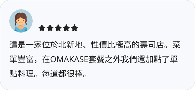 - 非常適合OMAKASE初學者
