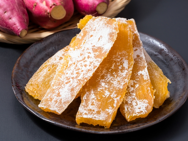 為了製作這種受人珍愛的美食,地瓜被蒸熟、切片然後曬乾,製成甜而有嚼勁的零食。富含膳食纖維且天然甜美,可以立即享用或輕輕煎烤。來自茨城的乾地瓜特別有名,非常適合作為紀念品。