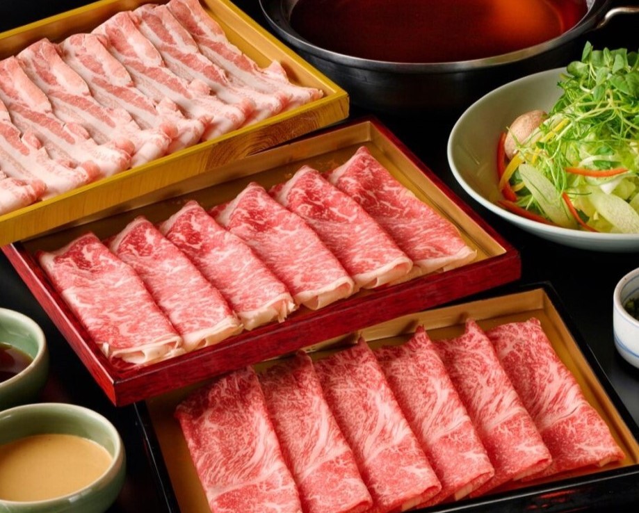 嚐鮮國產頂級沙朗及鹿兒島六白黑豬所製成的正宗涮涮鍋料理。