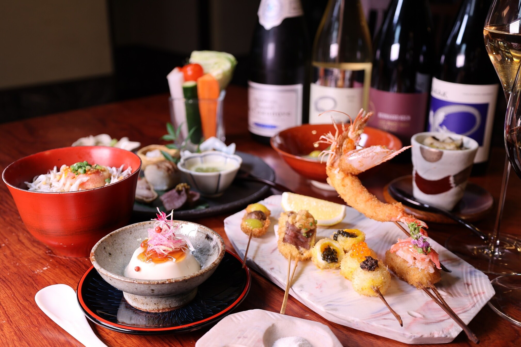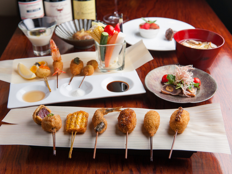 本店使用當地蔬菜、海鮮及大阪品牌豬肉,能優雅地享受作為大阪代表飲食文化的炸串。以高溫油炸並利用餘溫完成,外層輕盈,並能引出食材的鮮味。午餐時段同樣可用,推薦想輕鬆品嚐大阪風炸串的您。