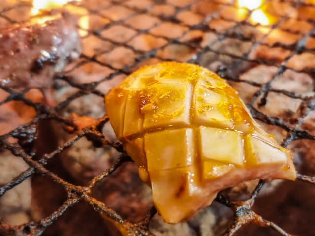 將內臟放在加熱的烤具(烤架、炭爐等)上慢慢烘烤。