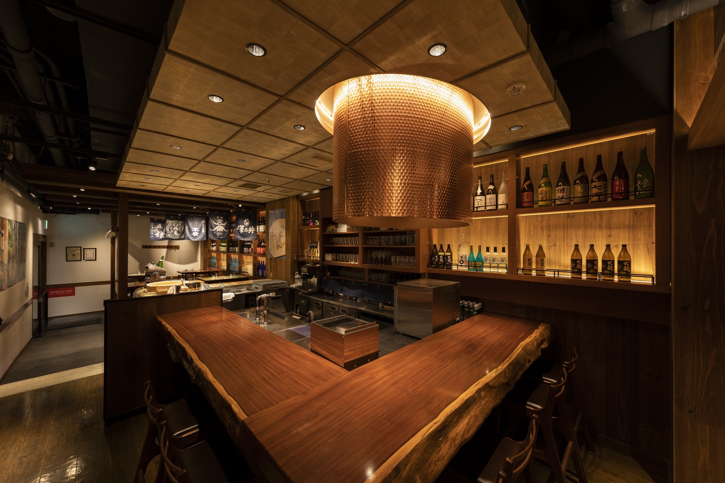 無論是參加會議的商務人士還是僅參觀這座標誌性復合設施的人,這家居酒屋別具特色的木質裝飾會讓人沉靜下來,放鬆身心。