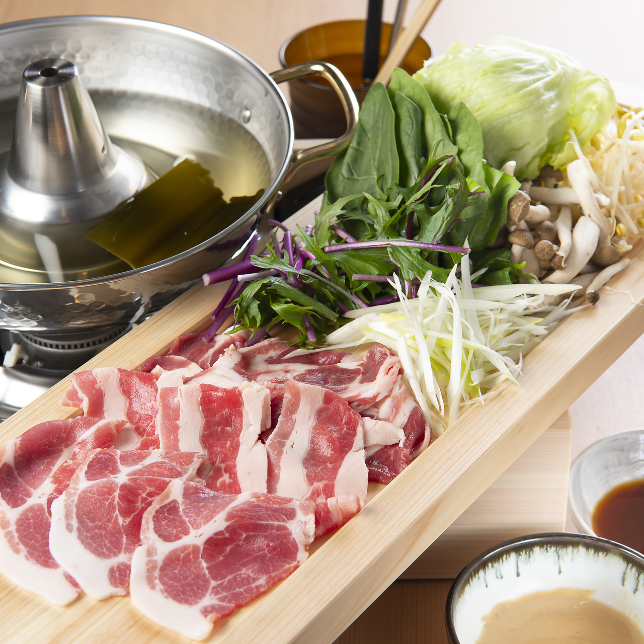 120分鐘吃到飽的涮涮鍋,可享用A5等級黑毛和牛及數種肉品與新鮮蔬菜。有些套餐還包含喝到飽服務,可以搭配日本清酒同享。明亮休閒的氛圍使首次嘗試者也容易享受日式料理,是人氣聚集地。