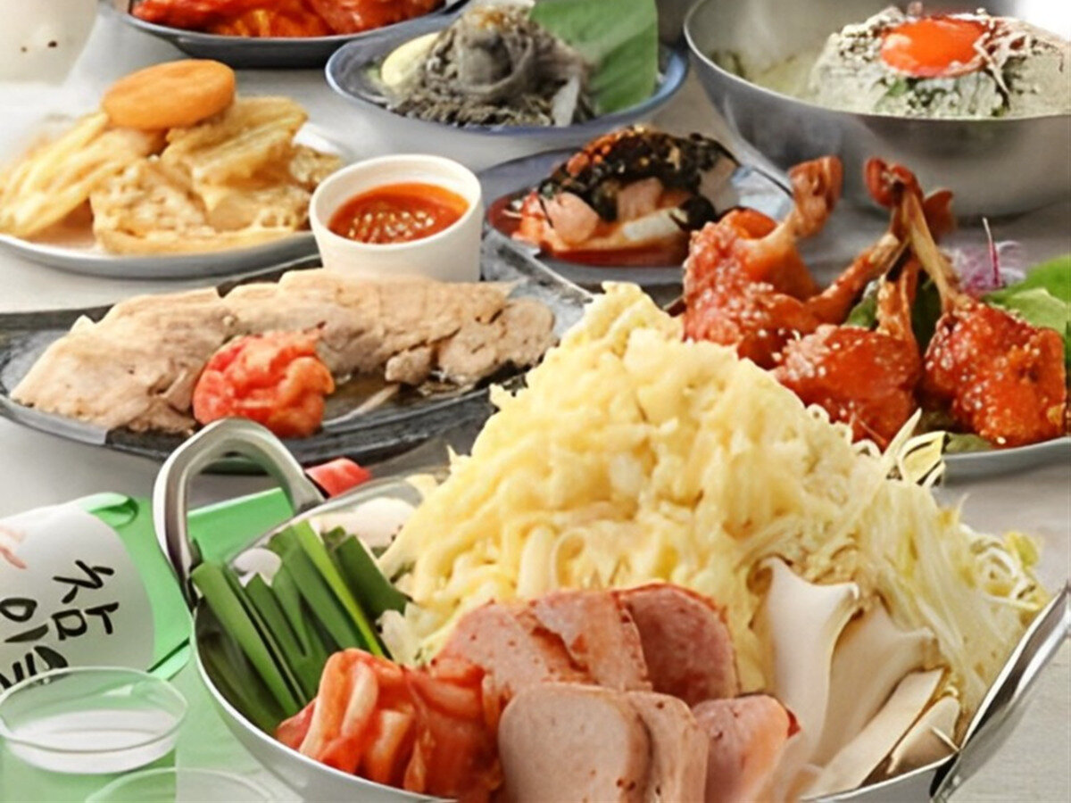 最值得推薦的是熟成豬肉和新鮮蔬菜的「無限暢吃烤五花肉」。此外,還有「起司炸雞」和經典的「部隊鍋」等多種美味辛辣的料理可供盡情享受!